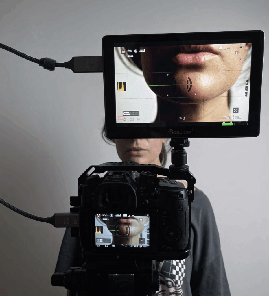 Die Idee des Projekts EX_AURA basiert darauf mittels Fotografie Worten Gestalt zu verleihen, durch die Aufteilung des Wortes in einzelne Buchstaben, begleitet von Lippenbewegungen, unter Ausschluss des Phonems. Die Lippenbewegungen beim Aussprechen eines Buchstabens oder einer Silbe werden eingefangen und mittels Cyanotypie auf Papier gebracht.